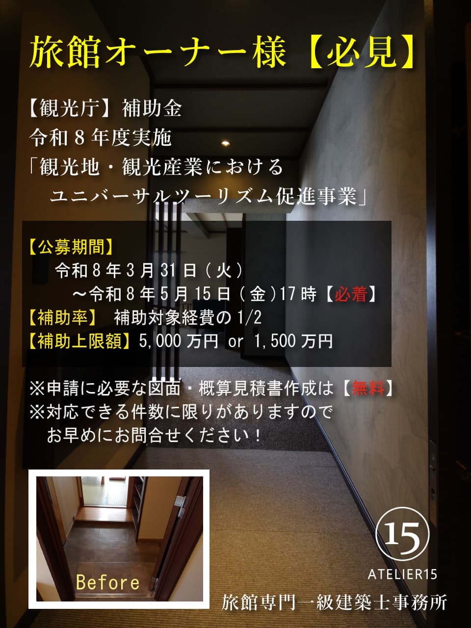 ご相談、初回ご提案図面・概算見積の作成は【無料】ですが、現地打合せのために旅館まで掛かる交通費は打合せ当日、実費精算でお願い致します。